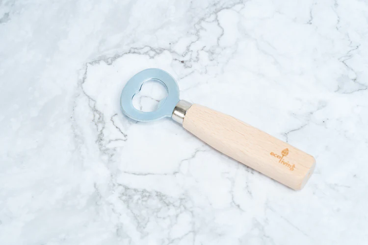 A wooden and metal bottle opener. A sturdy bottle opener to give the bottle that extra tug to get the cap off and enjoy that well deserved drink!
