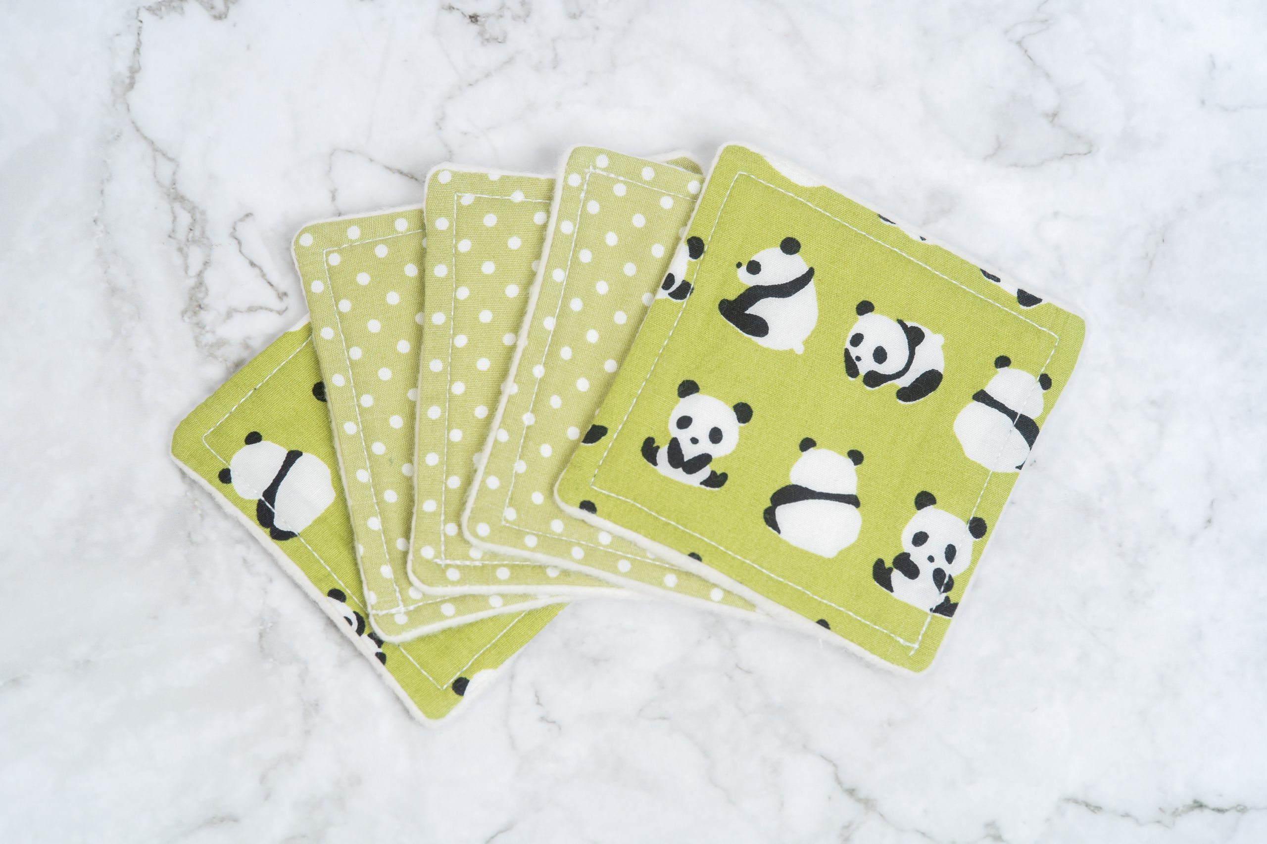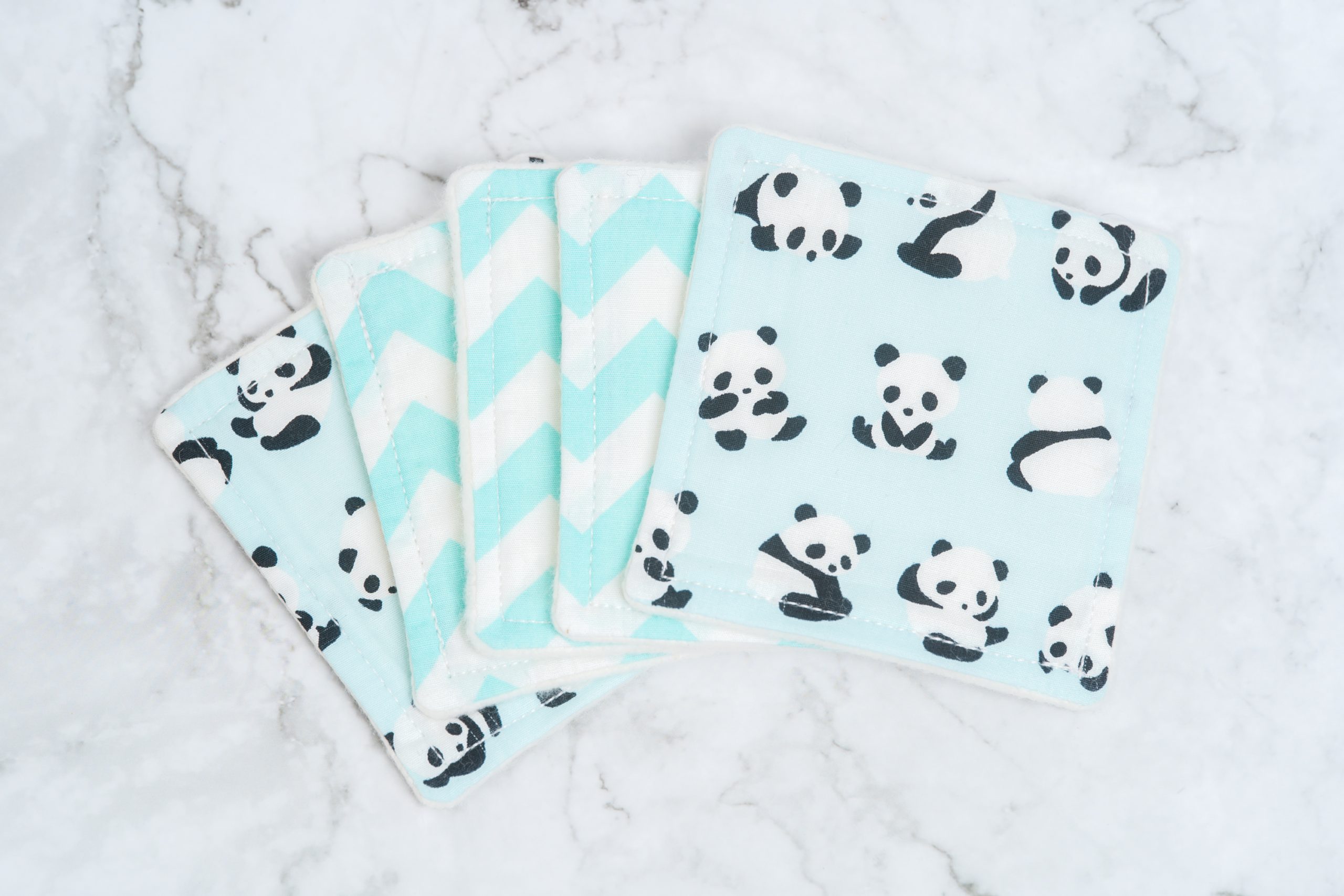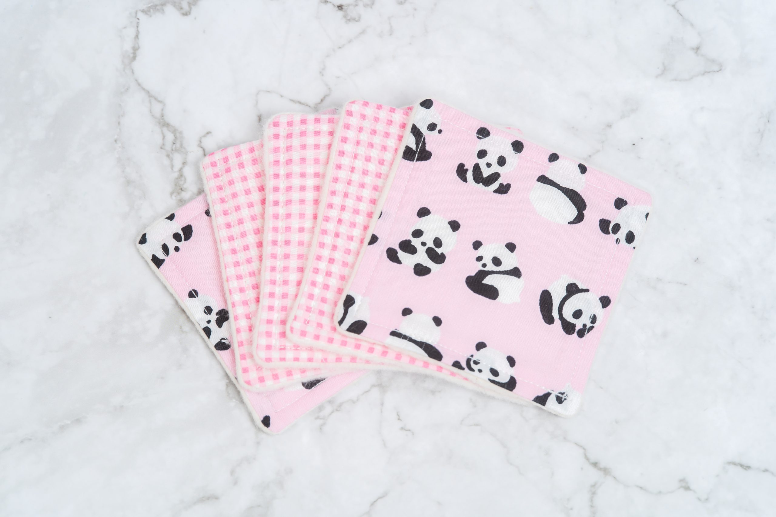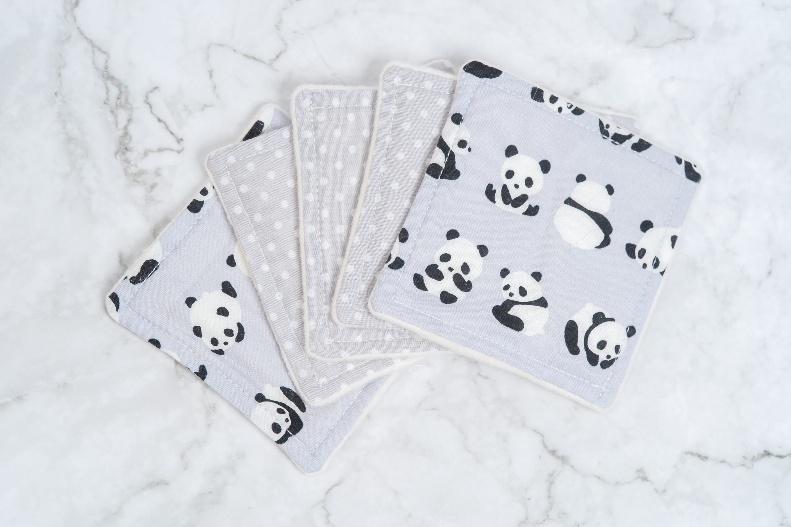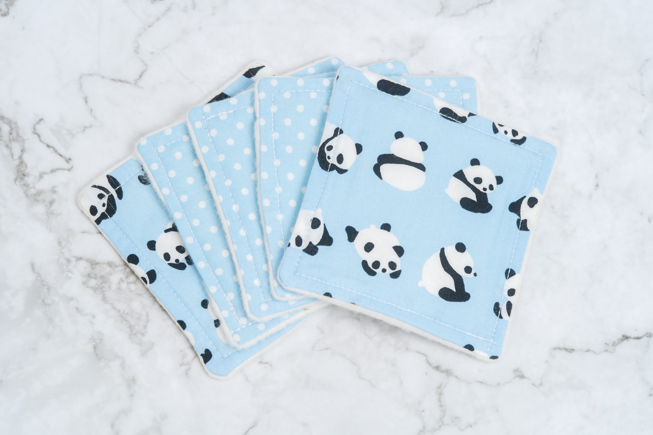 These are made with a super soft bamboo and cotton blend fleece, cotton thread and a pretty panda cotton fabric. They are machine washable up to 40c and can be tumble dried.