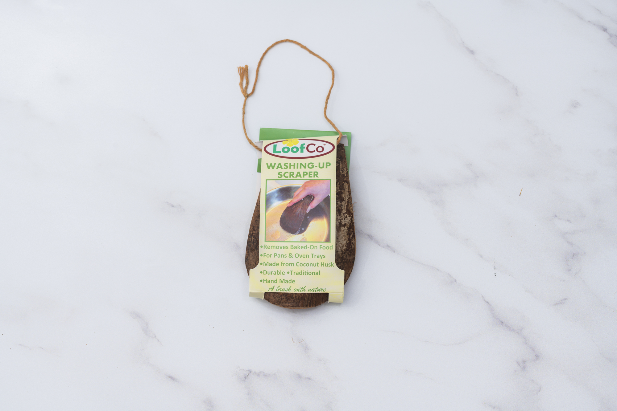 Swap to the LoofCo Washing Up Scraper for a greener and more effective cleaning experience. Unlike conventional scourers, this scraper offers lasting durability without relying on plastic materials. Its unique design features a blade-like edge at the front and fibrous coir fibers underneath, acting as a natural scrubbing brush. After use, simply rinse and hang up to dry from the convenient string loop. When the bristle-like edge begins to fray, trim it with scissors to maintain a solid edge for continued use. Measuring approximately 11×7.5cm, this scraper is both practical and environmentally conscious, offering a sustainable solution for your kitchen cleaning needs.